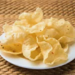 Thin, crispy Indian wafers or crackers, primarily made from rice flour, that are often served as a snack or side dish with meals.