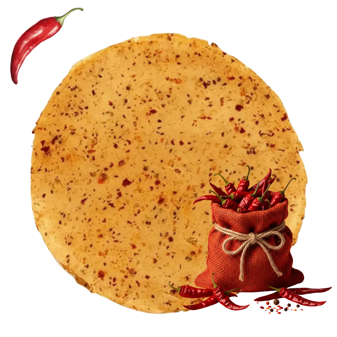 Crispy, hand-prepared papads made from premium lentils and spices — a crunchy companion to every meal.