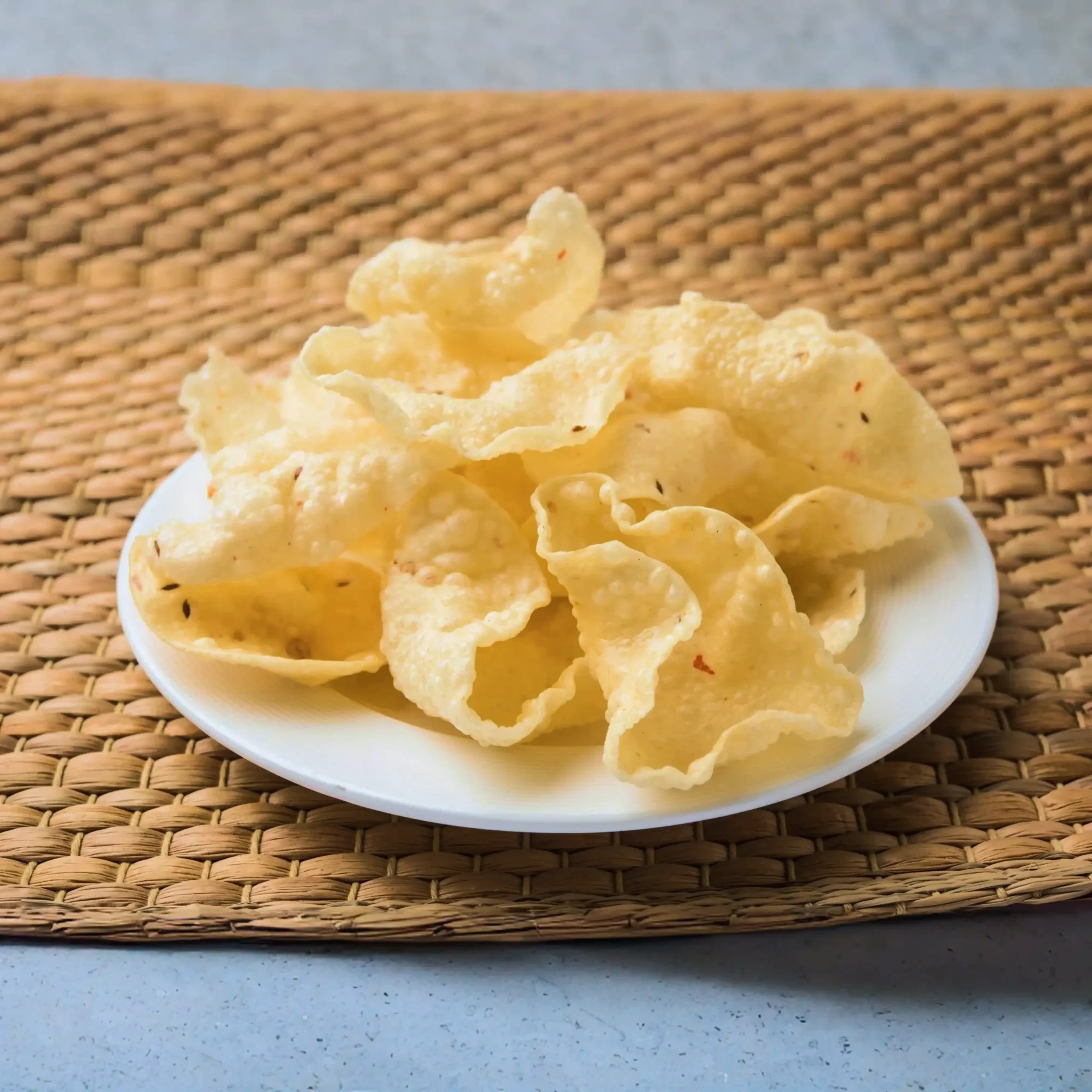 Rice Papad (Khichiya): also known as Khichiya in some regions, is a traditional Indian snack made primarily from rice, typically in the form of flattened rice (poha) or rice flour. Unlike lentil-based papads, rice papads have a distinct light and crispy texture, making them a popular accompaniment to meals or a standalone snack. They are flavored with a variety of spices such as jeera, ajwain, red chili offering diverse taste profiles for different preferences. Rice Papads offered by us is machine-made, ensuring uniform thickness, crispiness, and consistent quality. Rich in carbohydrates and easy to digest, they provide quick energy, support digestion, and are suitable for consumption by people of all ages. Their versatility, combined with authentic taste and digestive benefits, makes rice papads a beloved staple in Indian households.