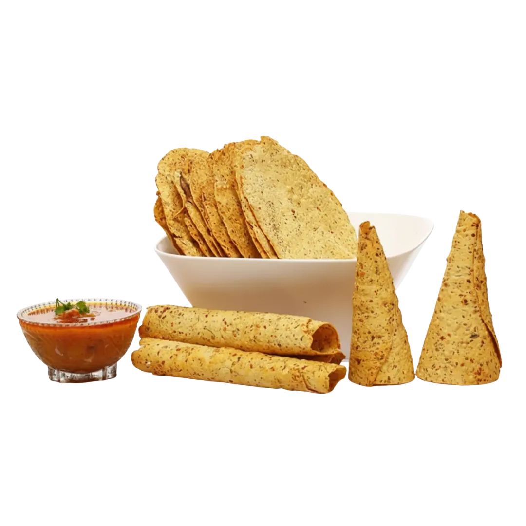 Papads: When it comes to preserving authentic taste and quality, few foods hold a more cherished place in Indian cuisine than papad. Papad is a traditional Indian snack made primarily from seasoned dough consisting of lentil flours such as moong, urad, or a blend of grains, along with spices, salt, and edible oil. The dough is carefully rolled out into thin, round discs and then sun-dried, giving it a long shelf life. Papad is typically enjoyed roasted, fried, or microwaved, adding a crispy, flavorful element to meals. Beyond its taste, papad offers several health benefits. Being made from lentils, it is a good source of protein, dietary fiber, and essential minerals. It supports digestion due to the use of spices like black pepper and asafoetida (hing), which help in reducing bloating and improving gut health. Low in fat when roasted, papad can be a light and nutritious addition to meals. It is served as an accompaniment, appetizer, or snack, making it a versatile and beloved part of Indian culinary tradition. Papad can be handmade or machine made.
